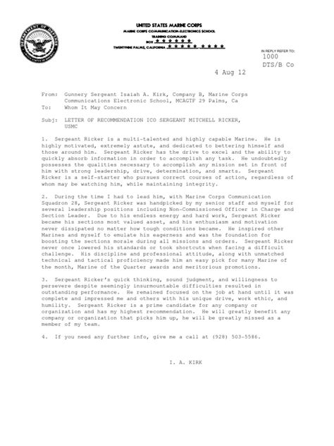Read Online letter of recommendation sample marine corps rtf